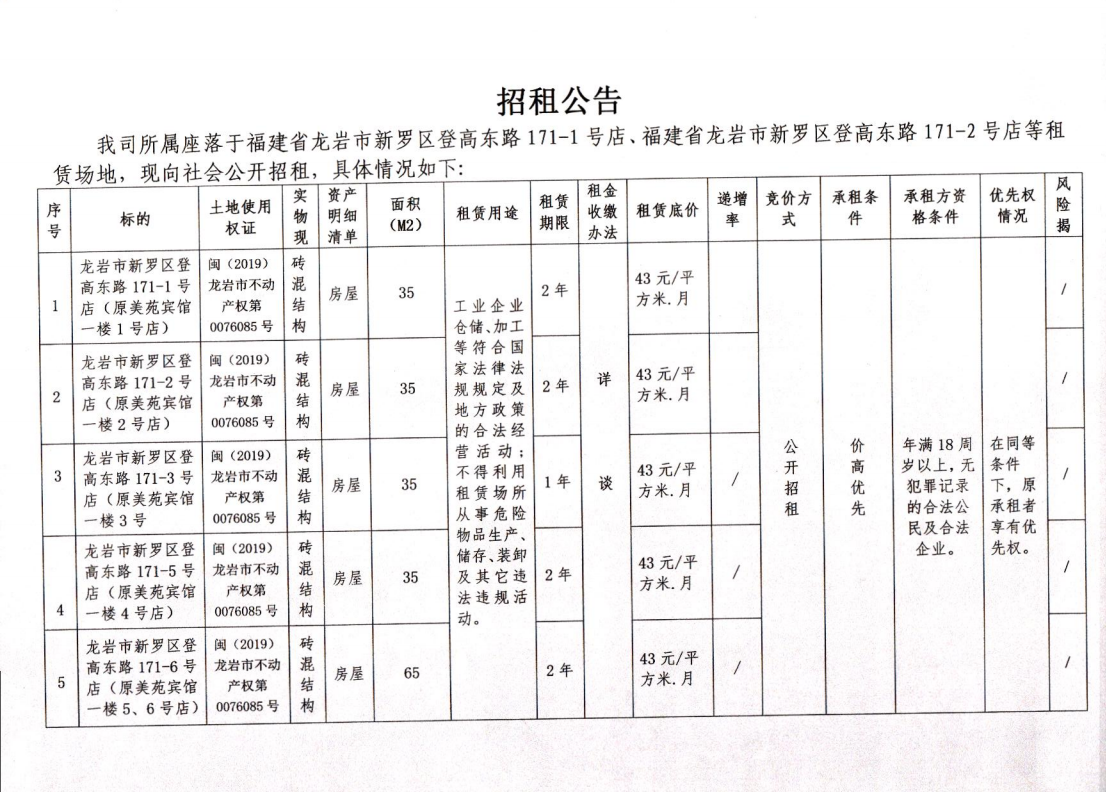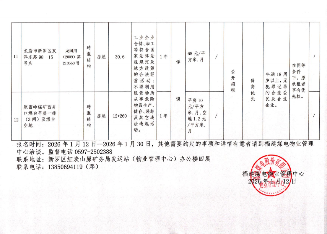 招租公告(1月)